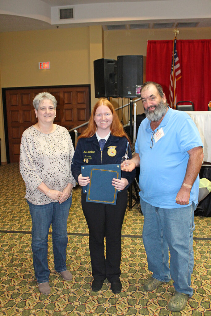 Congratulations to Kellen Lambert (Taylor County), first-place recipient of the Flora and Denver Turner Memorial Youth Speech Contest Award. Lexi is pictured here with Kim Turner Brown and her husband, Boone Brown. Many thanks go out to the Turner family. We appreciate that Kim and Boone Brown continue to support our youth and actively participate in the award ceremony.